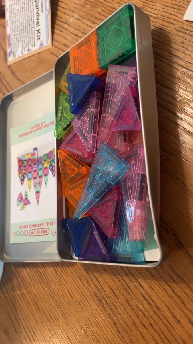 Crafted with smooth edges, strong magnets, and vibrant colors, the Mini Magnet Tiles are made to withstand endless play while keeping tiny hands safe. Each piece connects securely yet separates easily—so kids can explore, build, and learn with total confidence (and parents can relax).